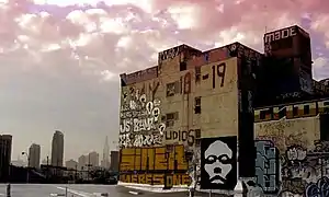 Many of the themes found in Illmatic revolve around Nas' experience living in an environment where poverty, violence, and drug use abound. Throughout the 1980s and early 1990s, residents of Queensbridge experienced intense violence, as the housing development was overrun by the crack epidemic. Illmatic contains imagery inspired by this prevalence of street crime. In "N.Y. State of Mind", Nas details the trap doors, rooftop snipers, street corner lookouts, and drug dealers that pervade his urban dreamscape.[34] Sohail Daulatzai describes this language as "chilling" and suggests that it "harrowingly describes and imagines with such surreal imagery, with so much noir discontent and even more fuck-you ambition, the fragile and tenuous lives of ghetto dwellers..."[34] Author Adam Mansbach interprets Nas' violent aesthetics as a metaphoric device meant to authenticate the rough edges of his persona: "Nas's world and worldview are criminal and criminalized. Hence, he uses metaphoric violence as a central trope of his poetic."[35] Writer and musician Gregory Tate regards this violent imagery as part of a trend towards dark subject matter that came to prevail among East Coast rappers in the hardcore hip hop scene. He writes, "[S]ome of the most memorably dark, depressive but flowing lyrics in hip hop history were written by Nas, Biggie, and members of the Wu-Tang Clan on the death knell of the crack trade."[36]
