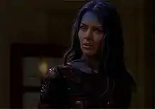 In the series Angel: After the Fall, Illyria's powers behave erratically and are closer to their full potential. Early in the series, she was shown to hold herself unarmed against a grown dragon at full strength, enduring a blast of fire from its mouth and being swallowed by it without visibly losing her taste for the fight – all this while sporting a stab wound to the torso from Angel which seemed to only offend and irritate as opposed to hurt her.[7] Her ability to alter time, while removed by the Mutari generator, seems to have at least partially returned as a result of the aftermath of L.A.'s relocation to hell. To what extent this ability can now be used has yet to be seen; during her fight with Angel, he reverted briefly to his former human self (Liam), his puppet self ("Smile Time") and a baby due to her manipulation of time, but the erratic nature of these shifts seems to indicate that she lacks any real control of her powers.[7] Later in the series, it transpires that the only thing keeping her from her true primordial form in After the Fall are the remnants of Fred's personality; when Gunn 'kills' the Fred persona, her true Old One form is unleashed.