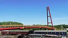 Ilmenau station is located in the city centre on the Plaue–Themar railway, which opened to Ilmenau in 1879. Ilmenau station and stations in the districts of Pörlitzer Höhe and Roda are connected by an hourly service to Erfurt via Arnstadt. Another line to Großbreitenbach was opened in 1881 and closed in 1998 and a third one to Themar via Schleusingen opened in 1904. Since 1998, there has no longer been a regular service, but there are some historical steam locomotives running at special events on the line, which crosses the Thuringian Forest on one of the steepest lines in Germany (with a gradient of 6%). Freight transport by rail is no longer important, with the exception of a train transporting the town's refuse to the incinerator at Leuna. The Nuremberg–Erfurt high-speed railway passes through the municipal boundaries, but no trains stop in Ilmenau as of 2021. There is debate whether the Ilmenau-Wolfsberg service station should be served by passenger trains.