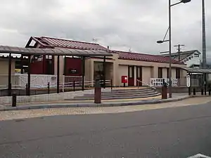 The station consists of an island platform serving two tracks, connected to the station building by a footbridge. The station is staffed.