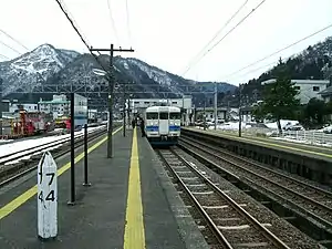 - ↑ 駅別JR貨客輸送状況(1日平均) [Station passenger figures (Fiscal 2016)] (PDF) (in Japanese). Japan: Fukui Prefectural Government. 2017. Retrieved 2 May 2018.