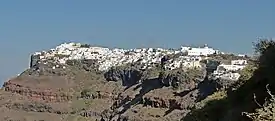 Imerovigli (Greek: Ημεροβίγλι) is a village on the island of Santorini, Greece, situated north of the island capital Fira. Imerovigli is built on the rim of the Santorini caldera and is crossed by narrow, paved paths.