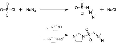 - ↑ Potter, Garrett T.; Jayson, Gordon C.; Miller, Gavin J.; Gardiner, John M. (2016-03-29). "An Updated Synthesis of the Diazo-Transfer Reagent Imidazole-1-sulfonyl Azide Hydrogen Sulfate" (PDF). The Journal of Organic Chemistry. 81 (8): 3443–3446. doi:10.1021/acs.joc.6b00177. PMID 26998999.