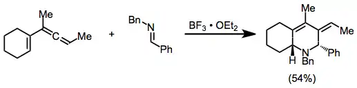 The imine Diels–Alder reaction involves the transformation of all-carbon dienes and imine dienophiles into tetrahydropyridines.[1]