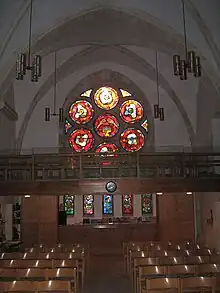 In October 1934 the DEMB convened again in Tübingen, declaring its partisanship with the Confessing Church and its Barmen declaration of May 1934, however, the actual policy depended – case to case – on the opinion of the respective responsible person.[50] While in Germany ecclesiastical media were banned to report on the struggle of the churches, there was no censorship in British Palestine. So Provost Ernst Rhein, the responsible editor of the "Gemeindeblatt", let his then Vicar Georg Weiß (later deacon in Nuremberg) report on the German struggle of the churches, openly siding with the Confessing Church, in his article on the occasion of Harvest Festival (German: Erntedankfest).[46] German Christian Heckel, head of the Ecclesiastical Foreign Department, heftily criticised Rhein and Weiß for that article.[51]