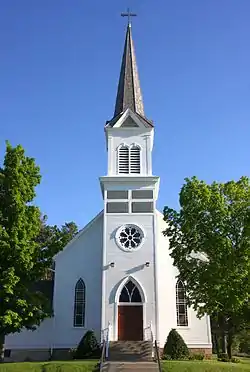 Immanuel Lutheran Church is a historic church in Hay Creek Township, Goodhue County, Minnesota, Goodhue County, Minnesota, United States, near the city of Red Wing. The congregation was organized in 1858 by German Lutheran families who had settled in Flower Valley. Their first pastor, William Wier, came to administer the sacrament twice a year through the summer of 1861. The first church building was a three-room building completed around 1862. A number of German Lutherans in the southern part of the township wanted to join the Immanuel congregation, so the congregation established a northern district and a southern district. This arrangement continued for a while until the building in Flower Valley was moved to the current location in Hay Creek in 1868. The land in Hay Creek consisted of two acres donated by a Mr. W. Plote.[2]
