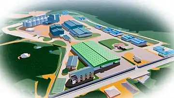 The rice mill in Imota is 22 hectares big, with the mill itself occupying 8.5 hectares. It will be the largest mill in Africa and the third largest mill in the world.[3] The rice mill has a capacity to produce 2.8 million bags of 50 kg bags of rice yearly, while generating 1,500 direct jobs and 254,000 indirect jobs. On completion, in line with the estimated installed infrastructure of the facility, the production capacity of the rice mill in Imota will set it among the largest in the world, and the largest in sub-Saharan Africa.[4]