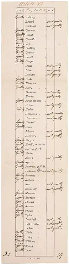 - ↑ "The Vote on Impeachment". Newspapers.com. Chicago Tribune. May 18, 1868. Retrieved July 28, 2022.