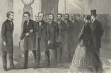 When Speaker Schuyler Colfax initially read the results of the balloting, he read Stevens and Butler's names first, seeming to imply that Stevens would serve as the committee's chairman while Butler would be his deputy. Bingham furiously exclaimed, "I'll be damned if I serve under Butler."[38] Likely to sidestep this problem, Speaker Colfax decided to announce that the committee itself would choose who would serve as its chairman, as opposed to the full House deciding.[19][38] Boutwell had originally been chosen as the chairman of impeachment managers for Johnson's impeachment trial, but, before the trial, resigned this position in favor of having Bingham serve in it.[40] Despite Bingham being carrying this title, it was Benjamin Butler who ultimately would step up to act as the lead prosecutor. Despite Thaddeus Stevens having been a major force behind the effort to impeach Johnson, he could not be the leading force of the prosecution due to his poor health at the time of the trial, which prevented him from attending many of the meetings of the impeachment managers. Despite not being the official chairman, Butler effectively served as the lead prosecutor during the trial.[38]