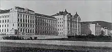 In 1901, the construction of the main building and the other 25 individual buildings began according to the plans of the military chief engineer Paul Acham, which was completed in 1904 and opened on 4 November 1904 by Emperor Franz Joseph. Up to 370 students could live and be taught in the academy at this time. In addition, there was an almost self-sufficient infrastructure. In addition to the facilities required for military operations such as stables and parade grounds, there was also a gardening shop, a butcher's shop, a sick and isolation pavilion, several libraries, a swimming pool, a hairdresser's room, etc.