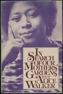 Published in 1983, In Search of Our Mothers' Gardens: Womanist Prose is a collection composed of 36 separate pieces written by Alice Walker. The essays, articles, reviews, statements, and speeches were written between 1966 and 1982.[1] Many are based on her understanding of "womanist" theory. Walker defines "womanist" at the beginning of the collection as "A black feminist or feminist of color. From the black folk expression of mother to female children and also a woman who loves other women, sexually and/or nonsexually. Appreciates and prefers women's culture. Committed to survival and wholeness of entire people, male and female. Womanist is to feminist as purple is to lavender."[2]
