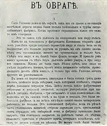 - ↑ "Краткое содержание повести Чехова "В овраге"". briefly.ru (in Russian). Retrieved 2017-06-03.