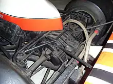 The McLaren M23's rear brakes nestle between the universal joints and the transaxle