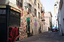 Indian Alley is the unofficial name given to a stretch of alley in the Skid Row area of downtown Los Angeles, so designated for the significance the area held for indigent American Indians from the 1970s to the 1990s.[1] Since 2011 the alley has become a notable site for Los Angeles street art hosting murals and sculpture that commemorate its historical significance to Skid Row's American Indian community.[2]