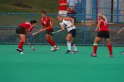 Field hockey has been a varsity sport at Indiana University since 2000.[1] The Hoosiers have been a member of the Big Ten Conference and have been coached by Amy Robertson in each season of the program's existence.[1][3] The team has twice appeared in the NCAA tournament, in 2005 and 2009, playing a total of three games. Indiana defeated North Carolina in the first round in 2005, while it was eliminated by Wake Forest both in the 2005 second round and the 2009 first round.[3] The Hoosiers' best regular-season performance in the Big Ten has been second place, which it has accomplished three times, in 2005, 2006, and 2009.[1][3] Indiana has also played in the Big Ten tournament championship game twice, losing both, to Michigan in 2005 and to Michigan State in 2009.[4]