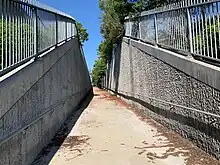 The City of Industry station opened on June 14, 1993, and built at a cost of $2.4 million as one of the original 5 stations on the line.[7] In 1994, the Riverside line had Metrolink's highest ridership per week, averaging 2,000 passengers.[8] A second platform facing North was originally constructed to serve the opposite side of the tracks but was mostly removed sometime around 2007. In 2012, 8,000 solar panels were installed to cover 940 parking spaces in an $11 million project that generates 2.2 megawatts (3,000 hp) of electricity per hour.[9] The project also included the installation of 64 electric car charging stations.[10] Most of the funding came from Proposition 1A, although the South Coast Air Quality Management District also provided a $2 million grant.[10]