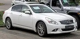 The Infiniti G Line[1] is a series of compact executive cars produced by Infiniti, a luxury division of Nissan, for the 1991–1996 and 1999–2016 model years. The first two generations of the Infiniti G (P10 and P11) were sedans based on the Nissan Primera. Beginning with its third generation (V35), the Infiniti G have been rebadged versions of the Nissan Skyline line of sedans and coupes that were exported to the United States and Canada. The final incarnation is the fourth generation (V36) which introduced the hardtop coupe convertible. The Nissan FM platform, on top of which the third and fourth generations (V35 and V36) of the Infiniti G have been built, also underpins the Nissan 370Z and has shared components with the Infiniti M, Infiniti EX, and Infiniti FX.