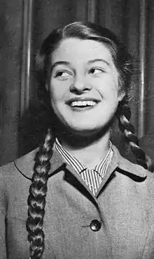 Ingeborg Elisabeth Nyberg Roos, née Nyberg (born 13 October 1940 in Sundsvall) is a Swedish singer and actress.[1] Nyberg was discovered at twelve years of age in the radio show Skansenkväll and made her album debut the same year with the music album Sommarnatt.[1] Though her music was mostly Christian music she became a teen idol during her fame years in the 1950s.[1] She recorded 10 single and EP records. Her most notable song is Aftonklockor, released in 1956.[2] Ingeborg Nyberg acted in several film, amongst them the film Sjutton år (1957). In it she acted with actor Tage Severin.
