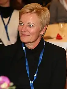 On 1 January 2004, Deltenre was elected director of the German-speaking broadcaster Schweizer Fernsehen (SF), succeeding Peter Schellenberg. She was the first woman to be appointed head of Swiss German television,[2][5] and the appointment was considered controversial as critics felt she had too little journalistic experience.[6] Deltenre was elected by the EBU Executive Board to succeed Jean Réveillon as the director-general of the Geneva-based broadcasters association, the European Broadcasting Union (EBU), in June 2009 and left SF to take up her new post on 1 January 2010.[7][8] She oversaw the direction of the Eurovision Song Contest and negotiated the rights of the broadcast of major sporting events for members of the EBU.[9] In 2015, Deltenre received a second term as EBU's director-general that would last from January 2016 to January 2019.[10] She left the EBU in September 2017 to focus on her responsibilities on various boards, providing them her knowledge of digitisation, environmental, social and governance, human resources and marketing. Deltenre was succeeded as director-general by Noel Curran, the Director-General of RTÉ.[11][12]
