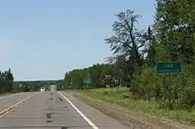 Looking west at the sign for Ino along U.S. 2