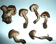 - ↑ Stijve T, Kuyper TW. (1985). "Occurrence of psilocybin in various higher fungi from several European countries". Planta Medica. 51 (5): 385–87. doi:10.1055/s-2007-969526. PMID 17342589.