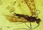 - ↑ Lin, Q.; Shih, C.; Zhao, Y.; Ren, D. (2017). "A new genus and species of Prosopistomatidae (Insecta: Ephemeroptera) from mid-Cretaceous Myanmar amber". Cretaceous Research. 84: 401–406. doi:10.1016/j.cretres.2017.11.020.