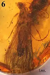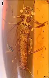- 1 2 3 Chen, Z.; Wang, B.; Du, Y. (2018). "Discovery of a new stonefly genus with three new species from mid-Cretaceous Burmese amber (Plecoptera: Perlidae)". Zootaxa. 4378 (4): 573–580. doi:10.11646/zootaxa.4378.4.8. PMID 29689999.