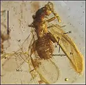 - 1 2 Ulitzka, M. R. (2018). "A first survey of Cretaceous thrips from Burmese amber including the establishment of a new family of Tubulifera (Insecta: Thysanoptera)". Zootaxa. 4486 (4): 548–558. doi:10.11646/zootaxa.4486.4.8. PMID 30313740. S2CID 52973551.