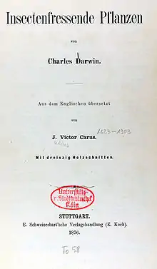 Insectivorous Plants is a book by British naturalist and evolutionary theory pioneer Charles Darwin, first published on 2 July 1875 in London.[1]