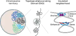 - ↑ Hnisz, D; Day, DS; Young, RA (17 November 2016). "Insulated Neighborhoods: Structural and Functional Units of Mammalian Gene Control". Cell. 167 (5): 1188–1200. doi:10.1016/j.cell.2016.10.024. PMC 5125522. PMID 27863240.
