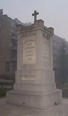 Monument to the Liberators of Belgrade in Karađorđe's Park is an authentic historical place of the camp of the main insurgent army and of the military cemetery of the liberators of Belgrade under Karađorđe during the Siege of Belgrade in 1806. The monument in the cemetery was erected by Prince Aleksandar Karađorđević[1] in 1848. It is the first monument in Belgrade erected in the honour of a historical event, and at the same time the first public monument.[2]