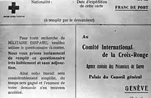 - ↑ The International Prisoners-of-War Agency: The ICRC in World War One (PDF). Geneva: International Committee of the Red Cross / Musée international de la Croix-Rouge et du Croissant-Rouge. 2007.