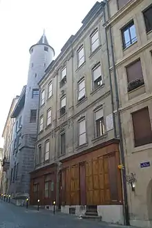 The actual address of the newly-founded Red Cross - and thus probably of its fledgling archives – became Dunant's private residence, the third floor of his family's "Maison Diodati" in the Old Town at Rue du Puits-Saint-Pierre 4. It remained there for the first few years.[5] However, as Dunant's colonial businesses in Algeria collapsed, he declared bankruptcy in 1867 and was pushed out of the ICRC by its president Moynier in the following year. It may be assumed that Dunant's ICRC-related records were transferred to Moynier's splendid city residence in Rue de l'Athénée No. 8 at first.[6]