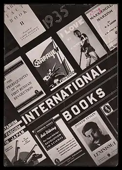 In the fall of 1935, International Publishers launched a new program called the "Book Union." This was a radical book-buying circle, modeled on the Book of the Month Club.[9] The Book Union first offered an anthology entitled Proletarian Literature in the United States, nearly 400 pages long and edited by current or future editors of The New Masses: Michael Gold, Granville Hicks, Joseph North,[10] and others.[9] The Book Union collected a $1 annual fee from its members, who then received a discounted volume in the mail each month. The Book Union obliged members to buy 2 of 12 selections during the year.[9] Purchase of four books in a year entitled members to a bonus premium.[9] Despite its aggressively low pricing, the Book Union proved less successful than the Left Book Club operated by Victor Gollancz Ltd in England and seems to have been terminated after just a few years.