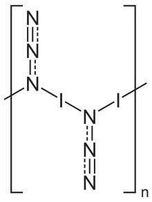 Iodine azide (IN3) is an explosive inorganic compound, which in ordinary conditions is a yellow solid.[1] Formally, it is an inter-pseudohalogen.