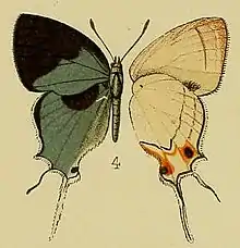 - ↑ Druce, Hamilton H. (1910). "Descriptions of new Lycaenidae and Hesperiidae from tropical West Africa". Proceedings of the Zoological Society of London. 1910 (1): 371–372; Pl. 35, Fig. 4.