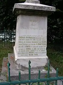 - A memorial in the Jiu gorge near the spot where General Dragalina was wounded, erected on 12 October 1927.