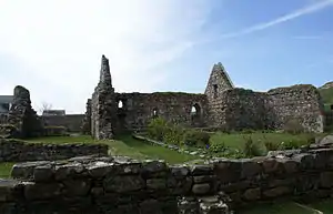The Iona Nunnery was an Augustinian convent of nuns located on the island of Iona in the Inner Hebrides of Scotland. It was established sometime after the foundation of the nearby Benedictine monastery in 1203. Bethóc, daughter of Somerled, was first prioress. The ruins of the nunnery stand in a peaceful precinct adjacent to Iona's main (and only) village, Baile Mor. They form the most complete remains of a medieval nunnery extant in Scotland. After the Reformation, the priory was dissolved and reduced to a ruin.