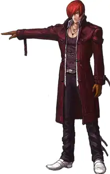 Iori Yagami (Japanese: 八神 庵, Hepburn: Yagami Iori) is a character from SNK's The King of Fighters video game series. The character first appeared in The King of Fighters '95 as the leader of the Rivals Team, as the initial enemy and later rival of Kyo Kusanagi. Iori is the heir of the Yagami clan, who use pyrokinetic powers and sealed the Orochi devil along with the Kusanagi and Yata clans. Iori suffers from a curse – "The Riot of the Blood" (血の暴走, Chi no Bōso) – under which he becomes faster, stronger and wilder, exhibiting a deadly tendency to indiscriminately attack everyone in close proximity. In this state, Iori is commonly called "Wild Iori" or "Orochi Iori" (月の夜大蛇の血に狂う庵, Tsuki no Yoru Orochi no Chi ni Kuruu Iori, lit. Insane Iori with Blood of Orochi Under the Night of the Moon).[3] Aside from the main series, Iori appears in several other media series, including spin-offs, crossover video games and comic adaptations of the series.