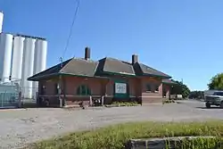 Iowa Falls businessman E.S. Ellsworth founded the Des Moines, Iowa Falls & Northern Railroad (DMIF&N) in 1899 with the intention of connecting Iowa Falls to Des Moines. They utilized the IC facilities in Iowa Falls for their local services. The IC decided to upgrade its facilities in 1902. The new depot was typical of the second generation IC depots in Iowa.[2] It featured their standard floor plan, brick walls, a hipped roof, and simple interior finishings. It served as a union depot until 1908 when the DMIF&N was acquired by the St. Paul & Des Moines Railroad, a subsidiary of the Chicago, Rock Island and Pacific Railroad. They built their own bridge across the Iowa River, and their own frame depot southeast of the union depot in 1909. The union depot continued to serve the Illinois Central until it discontinued passenger service in Iowa Falls. It was listed on the National Register of Historic Places in 1990.[1]