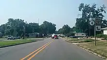 In 1926, when the U.S. Highway System was introduced, Iowa 17 was shortened on both ends. A service bulletin from the IHC in late 1925 listed Iowa 17 would begin in Jefferson and follow the same route to Estherville.[4] However, maps published the highway commission in 1927 show the route extended south to Adel ending at US 6.[5] By 1931, it had been extended north to the Minnesota state line along what was then Emmet County Road H (CR H).[6][7]