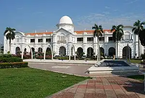 Designed by Arthur Benison Hubback, the current station was officially opened in 1917. Affectionately known as the Taj Mahal of Ipoh by its locals,[1] the building also houses a station hotel called the Majestic Hotel.