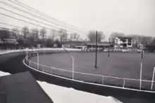 Totalisator turnover in the first two years after the war was £594,645 & £417,101.[5] The track continued throughout the 1950s and 1960s with racing held mainly on Wednesday and Saturday evenings at 7.15pm. The race distances were over 300, 500 and 700 yards and amenities included a licensed bar and snack bar and the totalisator was described as the Union Multi-speed wonder tote. The 405 yard circumference circuit had an 'Outside McKee' hare and the all-grass track was served by a spray watering system.[6]