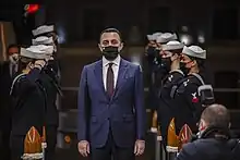 Nika Melia, chairman of the United National Movement party, was accused of organizing mass violence during the anti-government protests in 2019. When Melia declined to pay a $12,000 bail, a Georgian court ruled that Melia should be detained before his trial. In response, prime minister Giorgi Gakharia said the court's ruling was "unlawful", and on 18 February, Gakharia resigned over the decision to detain Melia.[30] The ruling Georgian Dream party supported Garibashvili to replace Gakharia, and the Parliament voted 89–2 to appoint Garibashvili on 22 February.[31] Melia was arrested while at United National Movement party headquarters on 23 February.[32]