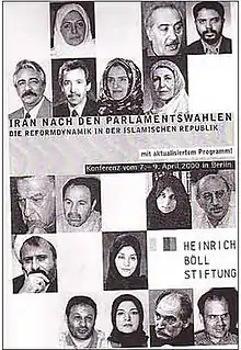 Iran After the Parliamentary Elections: The Dynamic of Reforms in the Islamic Republic (German: Iran nach den Parlamentswahlen: Die Reformdynamik in der Islamischen Republik; commonly known as the Berlin Conference in Iran) was a three-day conference about future of Iran after landslide victory of the reformists in 2000 legislative election, organized by the Heinrich Böll Foundation and held in Berlin in April 2000. The conference was less notable for its proceedings than for its disruption by anti-regime Iranian exiles, and for the long prison sentences given to several participants upon their return to Iran.