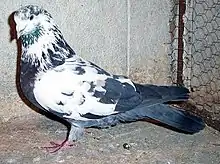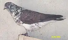 The Iranian Highflying Tumbler pigeon also known as "Persian Highflying Tumbler" in Europe and "Tehrani" in Iran is a breed of domestic pigeon bred in Iran for performance and endurance flying competitions. They fly at a very high altitude and at times out of sight. The tumbling is nothing like a Birmingham Roller, individual flips, occasionally hovering before it does the flip.
