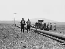 IPC assistants welding pipes together on the Esdraelon stretch in the 1930s.