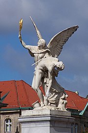 Iris Takes the Fallen Hero to Olympus (German: Iris trägt den gefallenen Helden zum Olymp empor), or sometimes Nike Takes the Fallen Hero to Olympus (German: Nike trägt den gefallenen Helden zum Olymp empor) is an 1857 sculpture by August Wredow, installed on Schlossbrücke in Berlin, Germany.[1]