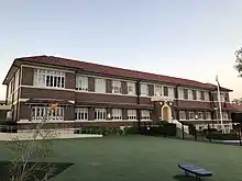 Between 1936 and 1946, a playing field was formed on the land added to the site in 1934. In July 1939 labourers employed under a job-creation scheme were working on the school grounds.[80][81] In June 1940 a tennis court was opened on the western boundary, followed by a second tennis court to its north in 1951-52.[82][83] A basketball court was constructed in 1956 southeast of Block A and in 1958 the swimming pool was opened on the southeast corner of the site.[29][1]