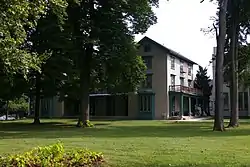 Irving Female College, also known as Irving Manor Apartments and Seidle Memorial Hospital, is a historic school complex located in Mechanicsburg in Cumberland County, Pennsylvania. The complex consists of two buildings: Irving Hall and Columbian Hall. Irving Hall is the older building, dating from about 1856. It is a three-story, U-shaped brick building with wood trim in the Italianate style. An extension to the building was built about 1900. Columbian Hall, built in 1893, is a three-story, rectangular brick building with a wood-frame addition. It is in a combined Italianate / Spanish Renaissance Revival style. It features a projecting stair tower with a semi-conical roof. Both Irving Hall and Columbian Hall were converted to apartments in the late-1930s. The complex formerly included a third building, known as "Argyle," which was the home of the Irving College president. Built in 1911, it was a rectangular Spanish Renaissance Revival style dwelling, with a low hipped roof and wraparound verandah.[3] "Argyle" was demolished in 1991 to make room for expansion of Seidle Hospital.[4]